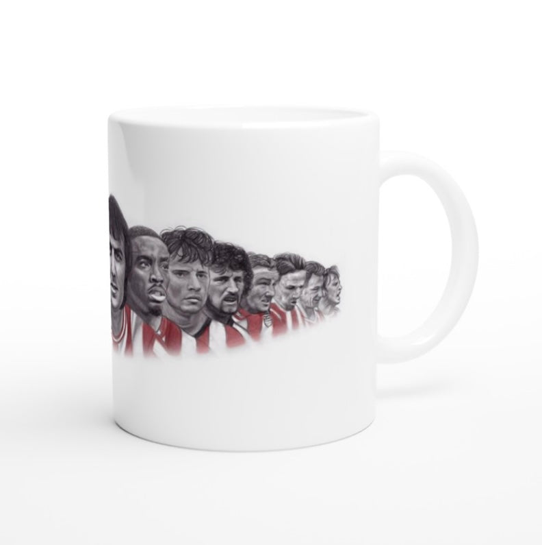 My drawing of 15 Brentford Legends printed on to an 11oz ceramic mug.