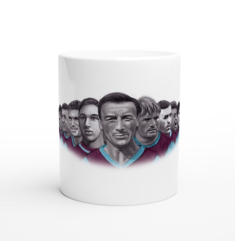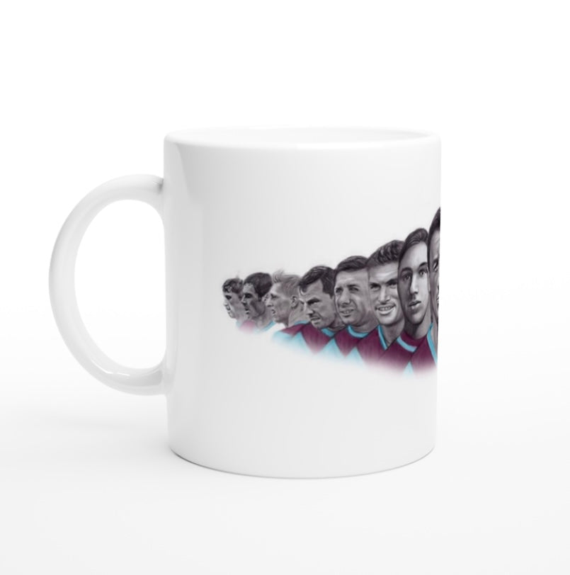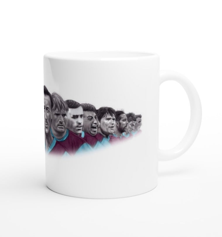 My drawing of 15 Burnley Legends printed on to an 11oz ceramic mug.