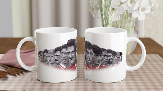 My drawing of 15 Liverpool Legends printed on to an ceramic mug.