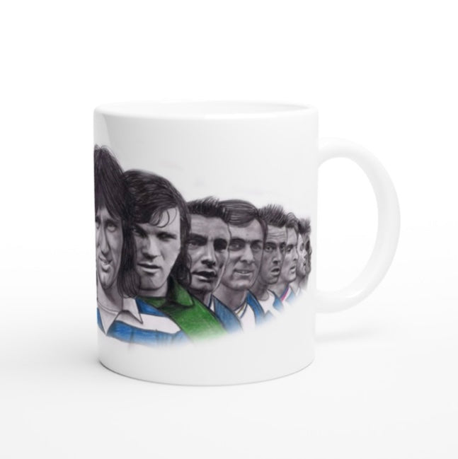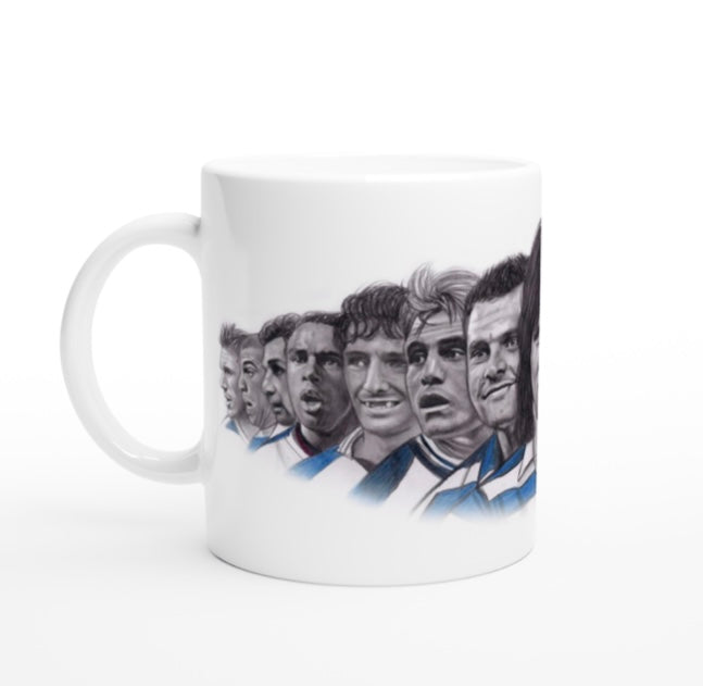 My drawing of 15 Reading Legends printed on to an 11oz ceramic mug.