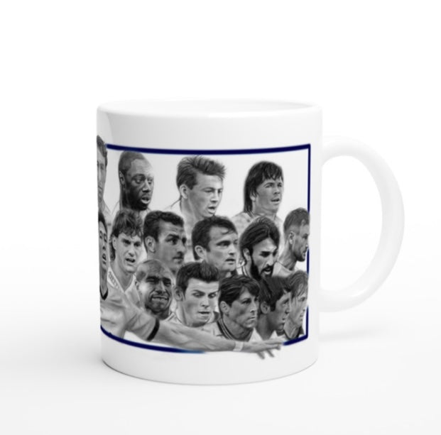 My drawing of 28 Spurs Greats printed on to an 11oz ceramic mug.